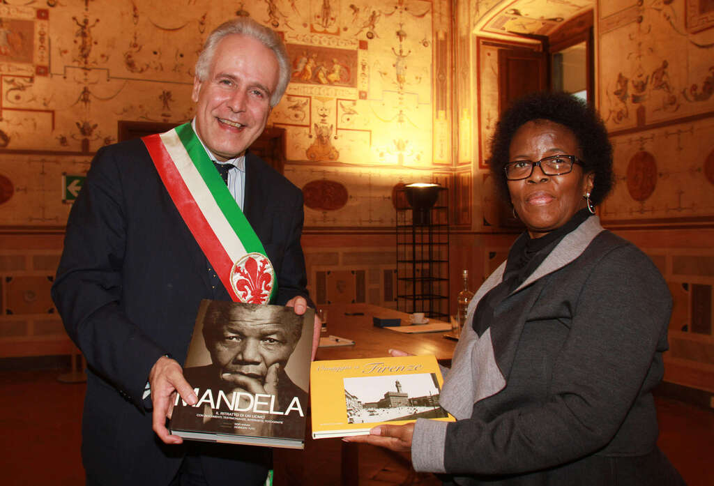 Il presidente del Consiglio comunale Eugenio Giani ha incontrato questo pomeriggio in Palazzo Vecchio (Sala di Lorenzo) l’ambasciatrice della Repubblica del Sudafrica Thenjiwe Ethel Mitintso. La visita, di cortesia, è stata fatta al termine del mandato diplomatico dell’ambasciatrice che, a gennaio, sarà sostituita dal nuovo ambasciatore. "Sono orgoglioso – ha detto Giani portando all’ambasciatrice i saluti del sindaco Renzi- di poter riaffermare il grande rapporto che unisce Firenze al Sudafrica, un rapporto al quale sappiamo quanto tenga il nostro sindaco e che si è tradotto in fatti concreti come l’intitolazione a Nelson Mandela del palasport e il conferimento della cittadinanza onoraria a Madiba. Auspichiamo – ha proseguito Giani- che una città del Sudafrica sia presto gemellata con Firenze. L’idea è quella di organizzare una bella mostra sul Rinascimento proprio in Sudafrica”. L’ambasciatrice Mitintso ha apprezzato le parole del presidente Giani e ha detto scherzando che una volta terminato il suo lavoro diventerà ambasciatrice di Firenze in Sudafrica. L’incontro al quale ha partecipato anche il console onorario della Repubblica del Sudafrica Riccardo Sarra si è concluso con uno scambio di doni. Giani ha offerto all’ambasciatrice un libro su Firenze e un ferma carte di vetro con una foto originale dei Fratelli Alinari in cui è riprodotto Palazzo Vecchio e gli Uffizi; l’ambasciatrice ha donato un libro con la storia e le foto di Nelson Mandela. (lb)