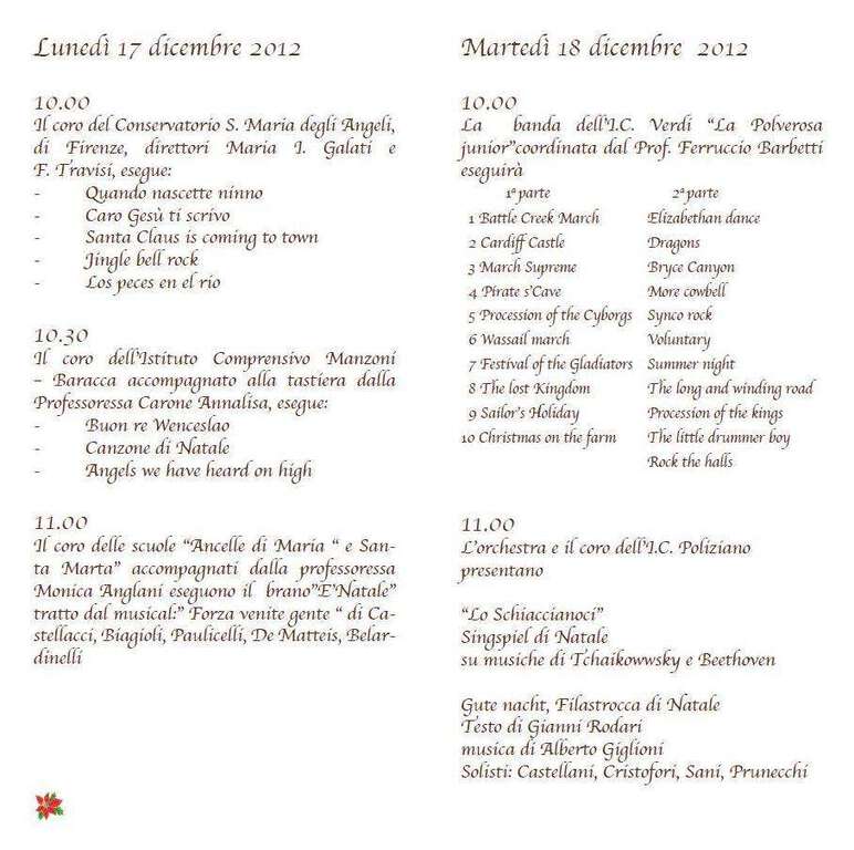 Il giorno dopo, sempre con inizio alle 10, toccherà al complesso bandistico della ‘Polverosa Junior’ (che comprende gli studenti scuola secondaria di primo grado dell’istituto comprensivo Verdi) diretta dal professor Ferruccio Barbetti e, subito, dopo, all’orchestra e al coro dell’istituto comprensivo Poliziano. (fn)
