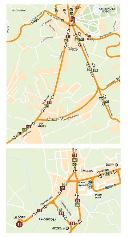 La Linea 11 (Salviatino – Galluzzo Le Gore) di nuovo in servizio anche nei giorni festivi, tra Porta Romana e le due Strade, non transiterà più il viale del Poggio Imperiale e via del Gelsomino (serviti dalla linea 37), ma percorrerà via Senese.