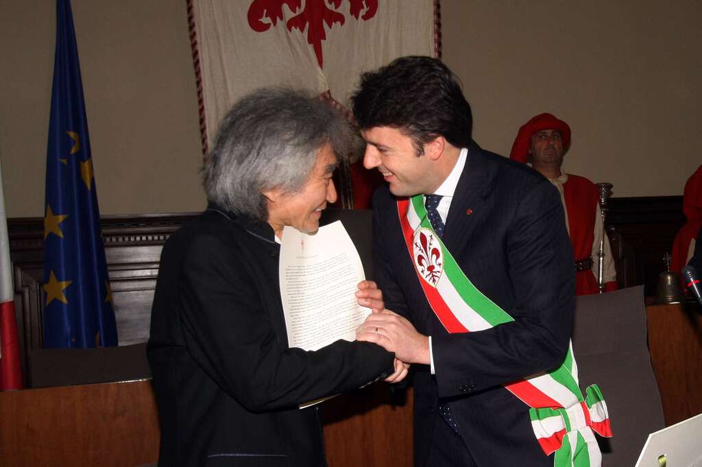 Il Maestro Seiji Ozawa è diventato cittadino onorario di Firenze. La cerimonia per conferire l'onorificenza si è svolta questa mattina, nel Salone dei Duecento di Palazzo Vecchio, alla presenza del sindaco Matteo Renzi, del presidente del consiglio comunale Eugenio Giani e del sovrintendente del Maggio Musicale Fiorentino Francesco Giambrone.